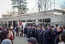 Mit einem kleinen Festakt bei frostigen, aber sonnigen Bedingungen hat die Stadt Freising das „Dichtfest“ an der Feuerwache 2 in Lerchenfeld gefeiert. Die 1974 errichtete Wache erhält bis Dezember 2026 einen modernen Erweiterungsbau mit Sozial-, Bereitschafts- und Schulungsräumen sowie ein zusätzliches eingeschossiges Garagengebäude, das dem Fuhrpark künftig mehr Platz bietet.